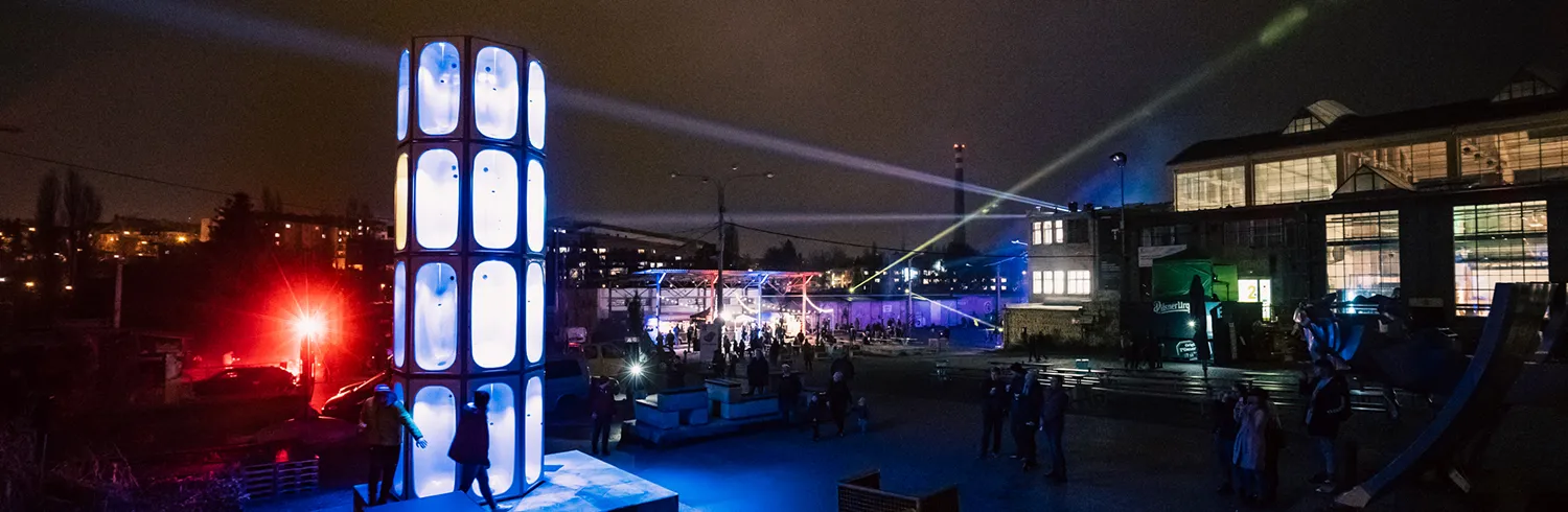 Runda av kvällen vid Celsiustorget, där det mäktiga ljusverket Aj Vana Be reser sig som en glittrande konstellation av 32 badkar – motsvarande den mängd vatten en Uppsalabo använder på en månad.