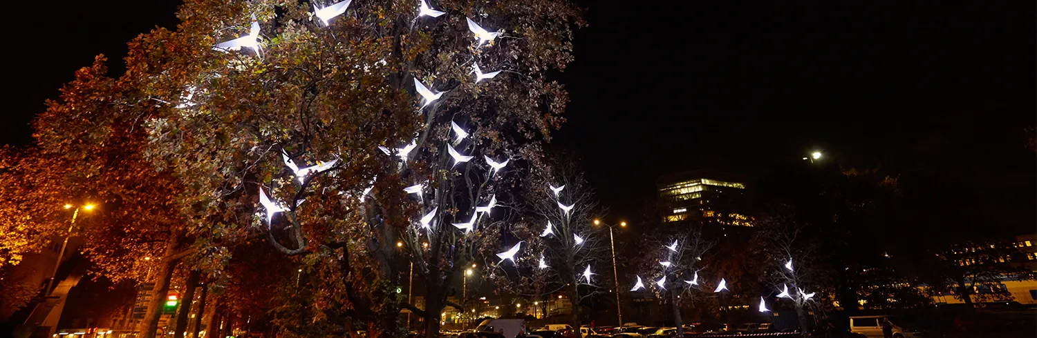 L’envol vid Gamla kyrkogården – ljusfåglar i träden